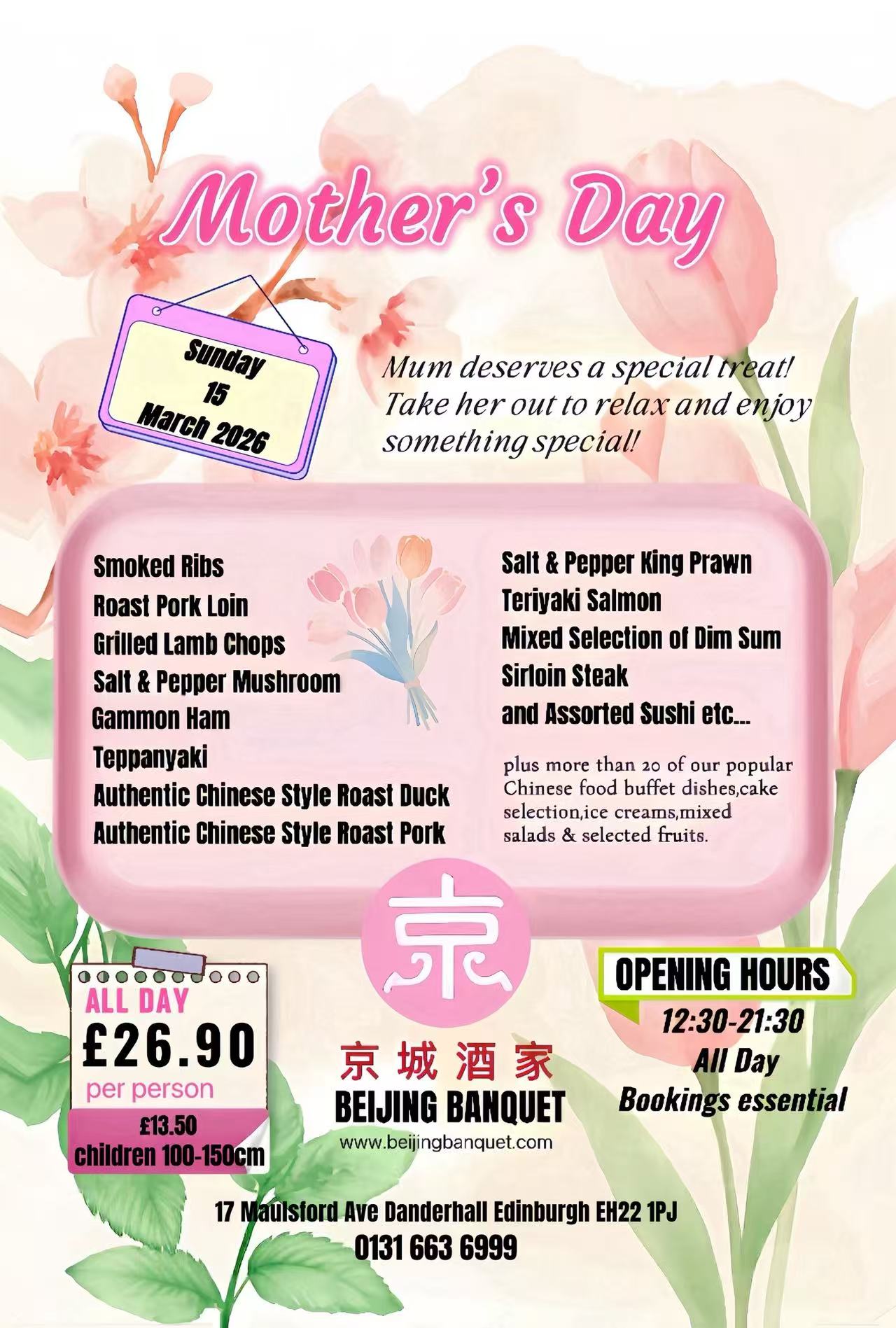 Join us for our special Mothers’ Day Menu, special prices apply 30 March 2025